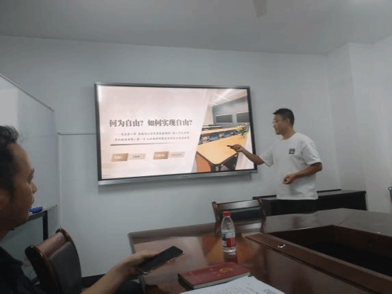 会议第一阶段,主讲人讲课。王俊勇老师本次讲授的主题是何谓自由,如何实现自由的问题。他从学生对手机使用的随意性、随时性是否属于自由出发,将主题设置为逻辑严谨的三个问题,即什么是自由,自由需要哪些条件,如何实现自由,并紧密结合大学生的生活实际,指出任性不是自由,无知不能获得自由。