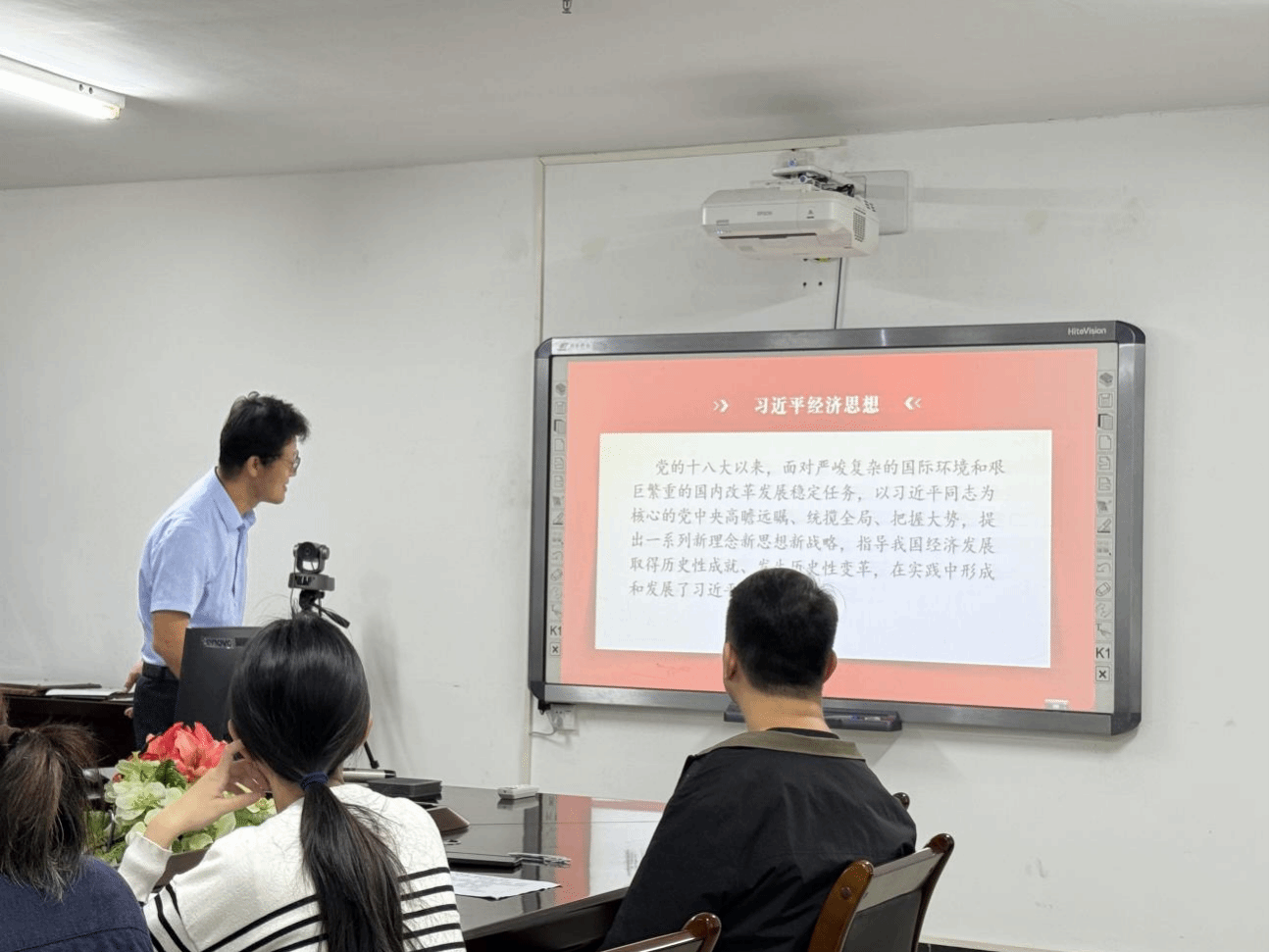 其次,夏锋教授以《深入学习习近平经济思想——“四新一改一高”战略》为主题,结合海南自贸港封关运作的实际进展与个人调研成果,系统阐释了习近平经济思想在海南的生动实践。夏锋教授指出,教师在授课中应引导学生深刻理解其理论逻辑与实践价值,增强学生对国家战略的认知认同。