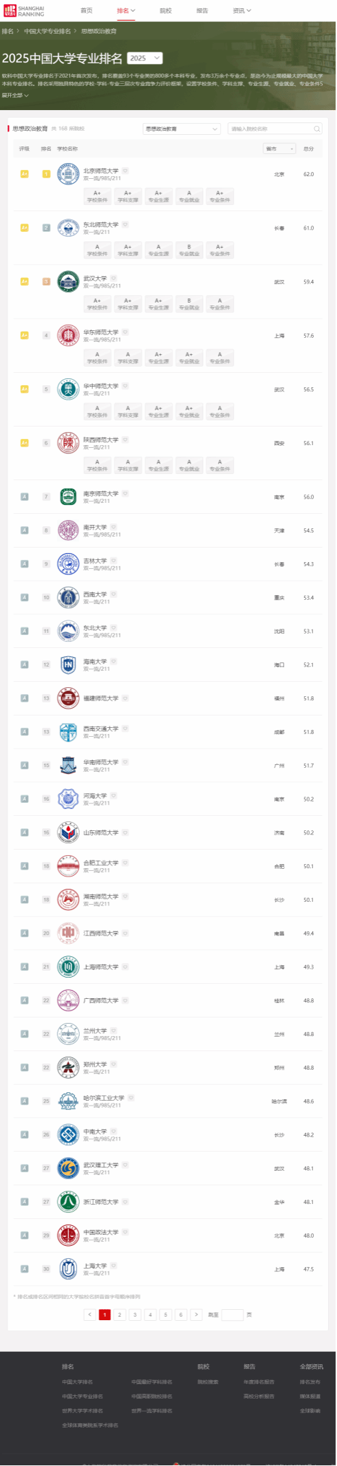 2025年6月18日,高等教育专业评价机构软科正式发布2025“软科中国大学专业排名”。william威廉英国官网思想政治教育本科专业以全国第12名的成绩再次进入A类行列,继2022年31名、2023年28名、2024年23名,排名继续稳步提升。