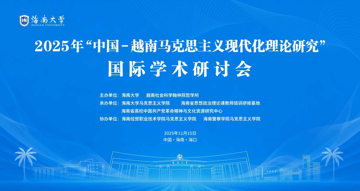 11月15日,2025年“中国-越南马克思主义现代化理论研究”国际学术研讨会在海南大学国际学术交流中心举行。会议以“马克思主义现代化理论研究”为主题,旨在总结社会主义国家现代化建设的实践经验,深化对马克思主义现代化理论的认识,搭建马克思主义区域研究平台,持续推动中越两国在理论创新、人才培养与学术交流方面的深度互动。