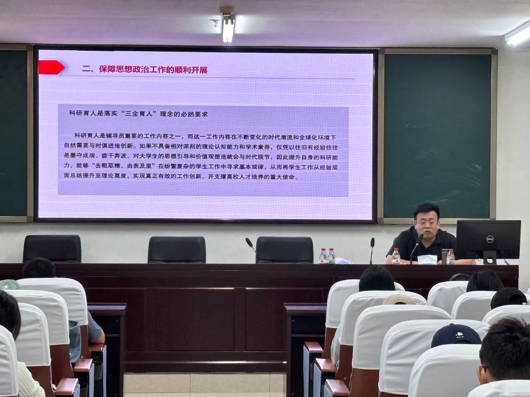 高飞学长以习近平总书记“要把思想政治教育放在立德树人、铸魂育人更加重要的位置”重要讲话为引,聚焦“思想政治教育科研之路”展开深度分享。他从科研的价值、现状、热点与路径四个维度,系统剖析了思想政治教育作为一门科学的内在逻辑与发展前景。高飞学长指出,科研不仅是学科发展的必然要求,更是个人职业成长的重要支撑。他结合当前12大学术热点——从元问题研究到学科交叉探索,为同学们勾勒出一幅广阔而深邃的学术图景。在谈到科研路径时,他深情寄语:“读书是根基,思考是灵魂,写作是升华”,鼓励同学们在经典中汲取智慧,在实践中激发灵感,在写作中锤炼思想。