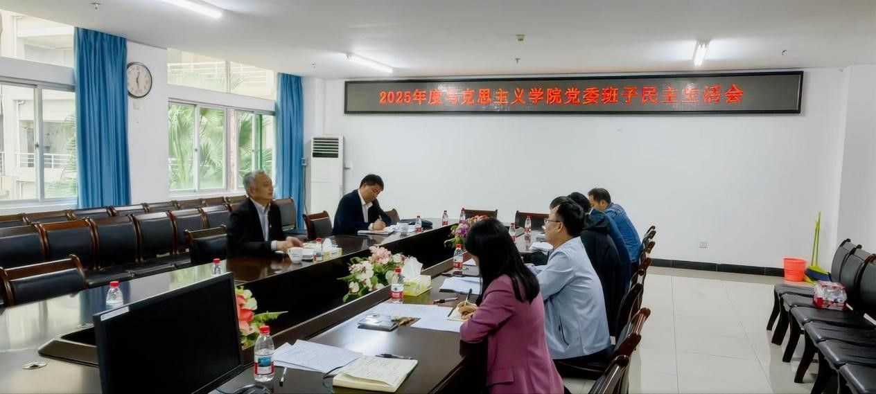1月23日上午,马克思主义学院2025年度党委班子民主生活会在学院A311会议室召开。校党委书记李湖莅临指导并讲话,党政办主任张乃脆陪同参会。会议由学院党委书记王大群主持,学院党委班子全体成员参加会议,聚焦主题深入查摆问题、开展批评和自我批评,凝聚发展共识。