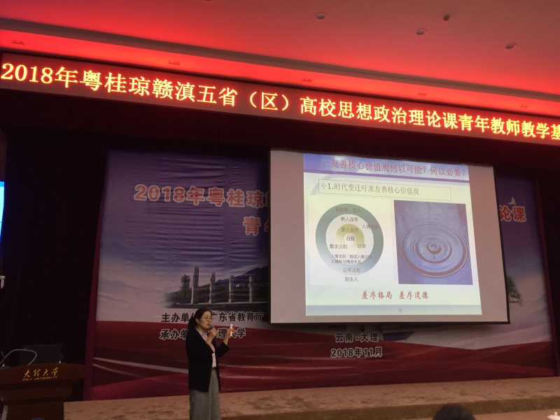11月29日上午,2018年粤桂琼赣滇五省(区)高校思想政治理论课青年教师教学基本功大赛在大理大学(云南·大理)拉开帷幕。期间,代表海南省高校参赛的四名选手参加了激烈角逐。马克思主义学院蒋玉老师以饱满的精神风貌、巧妙的课堂设计、娴熟的教学技艺和深厚的理论功底斩获大赛二等奖,充分展现了海南大学青年思政课教师的风采。