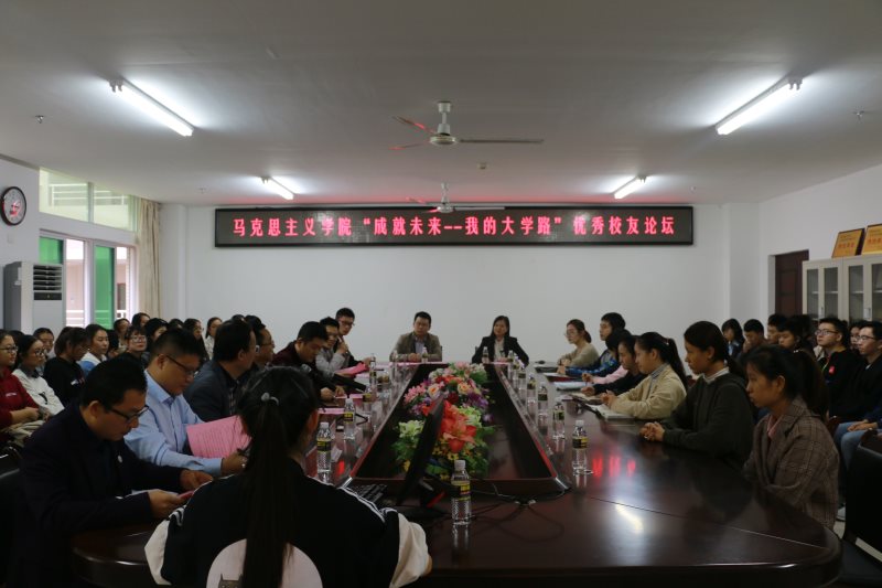 12月15日下午,在全校喜庆建校60周年之际,马克思主义学院在学院会议室举办“成就未来——我的大学路”优秀校友论坛。院党委书记段捷频、副院长王善、副院长吴朝阳,院团委与学生工作办公室主任周郭军、17级班主任温小平出席此次论坛,论坛由院党委副书记张井富主持。