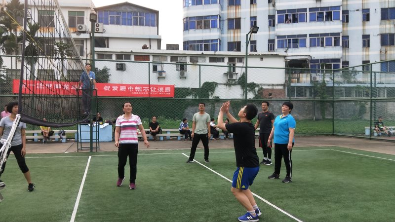 为了做好这项工作,学院工会进行了精心准备,根据各系部室特点,成立了特色鲜明男女混合的金队、洪队、牛队三支队伍。金队沉稳大气一传好、洪队年轻活跃速度快、牛队技术精湛扣球猛,学院领导积极加入三支队伍参与活动。场上,三支队伍龙争虎斗,战况激烈;场下,三支队伍欢声笑语,其乐融融。