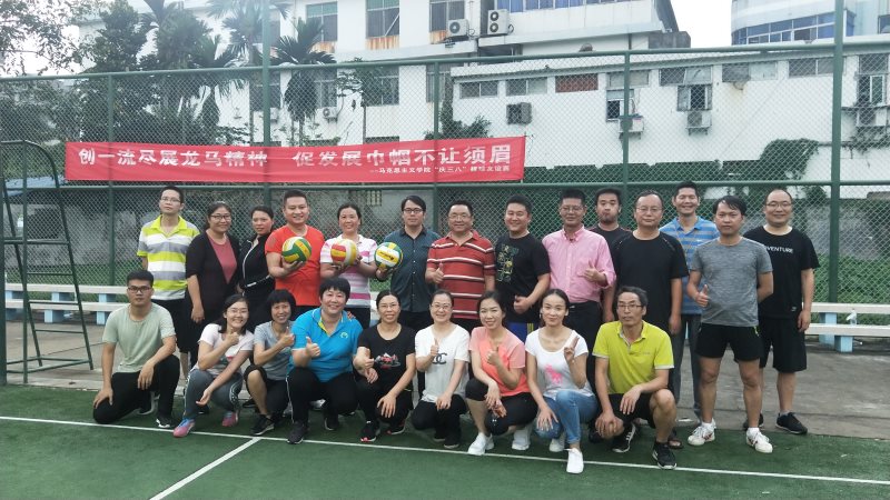 为庆祝“三八”国际妇女节,马克思主义学院于2019年3月8日下午在教工球场开展了以“创一流尽展龙马精神促发展巾帼不让须眉”为主题的排球联谊赛。