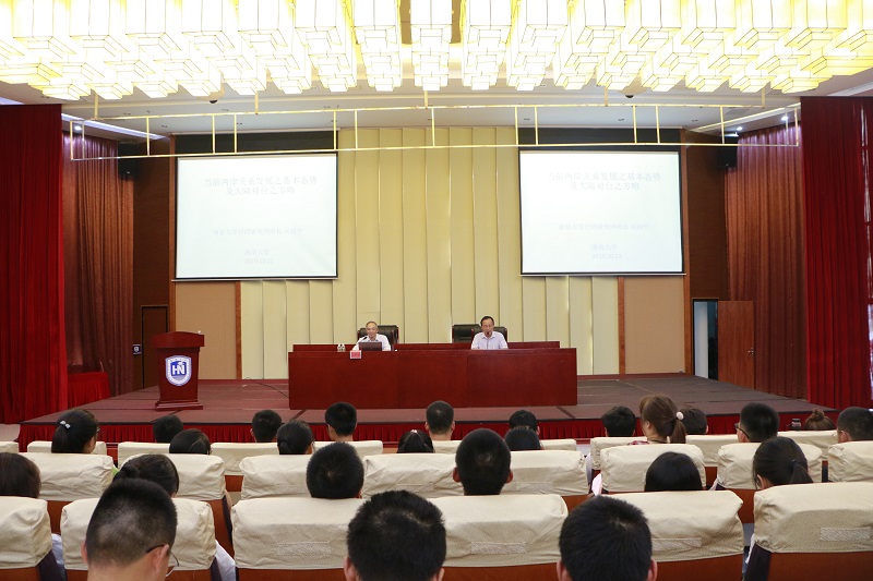 10月11日下午,海南大学第七期形势与政策时事论坛在社科楼二楼报告厅举办。南京大学历史学院教授、博士生导师、台湾研究所所长刘相平受邀为海南大学师生作主题为“当前两岸关系之基本态势与大陆对台方略”的专题报告,学校“形势与政策”授课老师及部分学生参加报告会活动。会议由马克思主义学院副院长王善主持。