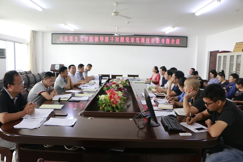 10月13日下午,马克思主义学院在社科楼A-311顺利进行领导班子对照党章党规找差距专题会议。学院党委书记段捷频、院长张云阁、党委副书记张井富、副院长吴朝阳、副院长王善,以及各党支部支委参加会议。会议由段捷频主持。