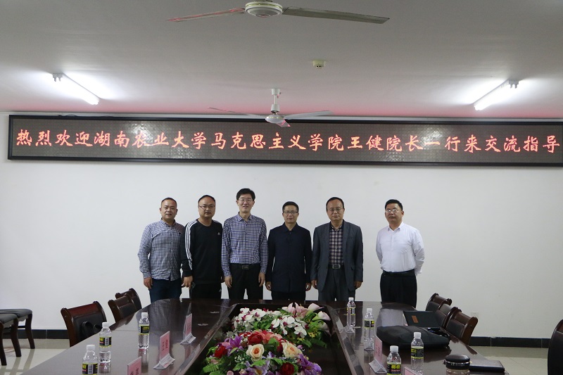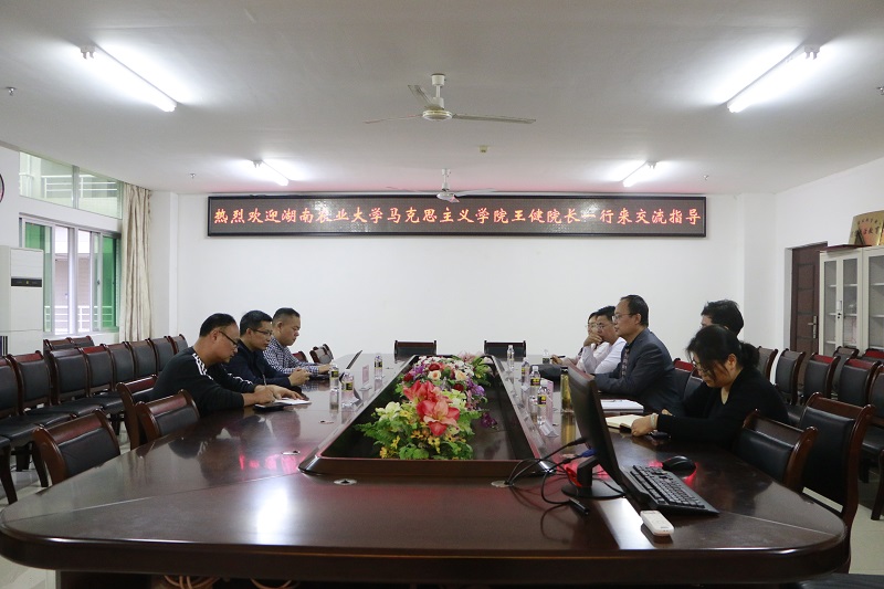 12月30日上午,湖南农业大学马克思主义学院王健院长一行来我院交流指导。并在社科楼A311召开了会议。我院副院长王善,教学委员会副主任贺尧夫、《原理》教研部主任范明水等参加座谈会。会议由王善主持。