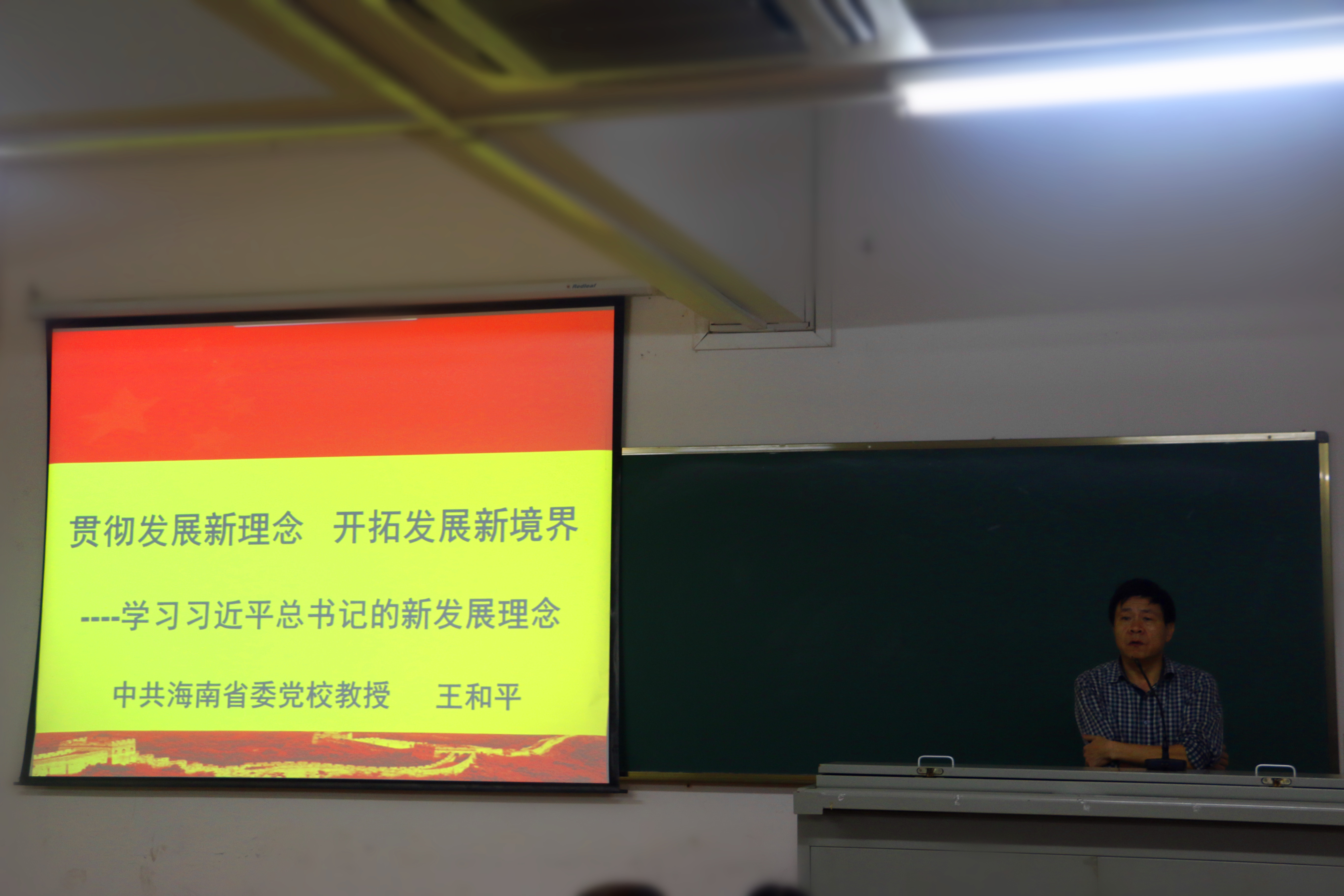 12月5日晚,海南省委党校副校长王和平教授以“贯彻发展新理念,开拓发展新境界——学习习近平总书记的新发展理念”为题,将中国特色社会主义理论与现实社会的热点问题相结合,用专业的视角、风趣幽默的话语以及贴近生活的丰富案例,深入分析中央关于“十三五”规划的建议与贯彻五大发展理念等新思想、新理念。他表示,创新是引领发展的第一动力,协调是平衡发展的内在要求,绿色是人民愿望的重要体现,开放是繁荣发展的必由之路,共享是发展的出发点和落脚点。
