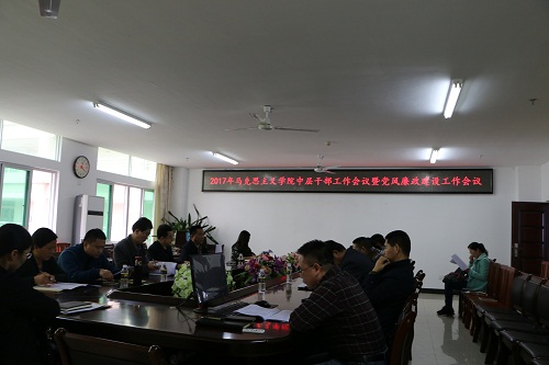 院长李德芳传达了校长李建保在会上作了题为《不忘初心,继续前进,为“创一流、建百强”而努力奋斗》的工作报告、《海南省统筹推进高水平大学和一流william英国中文官网实施方案》和《海南大学2017年工作要点》,他指出,开学第一周2月21日学院及时召开第一次全体职工大会,对新学期的工作任务做了详细的布置。他指出,在2016年,通过全院师生共同努力,学院教学改革、科研和学生工作等方面取得了显著的成绩,如毕业生就业率和科研工作受到学校点名肯定。他同时强调,2017年,面临新的形势和要求,我院全体职工应该以更加积极扎实的工作态度做好以下工作,一是认清形势,各系部室主任、支部书记要明确学校发展定位以及发展方向;二是明确任务,学院已结合学校的重点工作任务,将2017年学院的工作要点细化为16项重点工作,各二级部门负责人要根据学院工作要点制定相应的详细工作计划;三是勇于担责,马克思主义学院全体教师要增强担当意识,在立德树人方面成为表率;四是务实进取,结合学院和本系部室的实际创造性的开展工作。