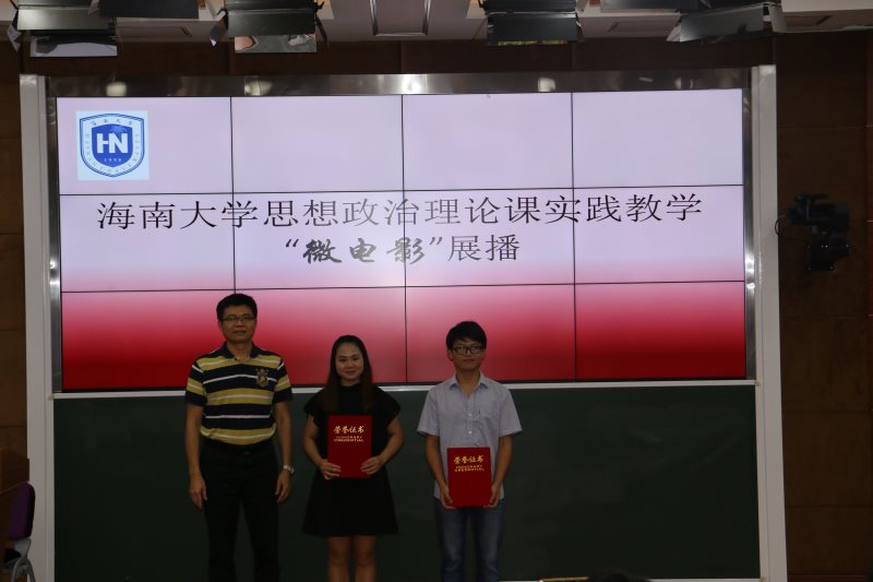 为贯彻落实中宣部、教育部《普通高校思想政治理论课建设体系创新计划》,进一步完善我校思想政治理论课“一主三辅”实践教学模式,5月16日,我院于2教211教室开展2017年海南大学思想政治教育理论课校园实践教学——微电影展播活动。海南省教育厅思政处处长文强、海南大学教务处处长张云阁出席活动并为获奖节目颁奖。马克思主义学院院长李德芳、党委书记段捷频、副院长李辽宁,贺尧夫主任以及海南大学部分师生代表参加活动。
