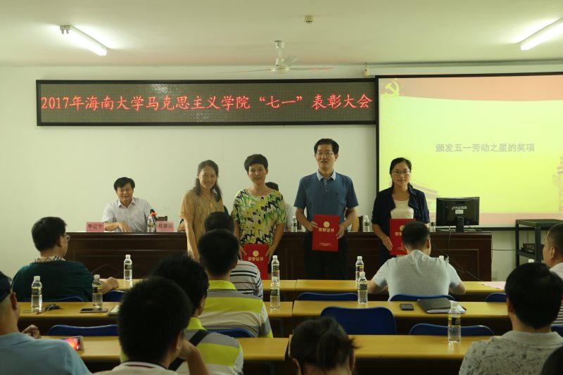 据悉,马克思主义学院党委荣获校“先进基层党委”,研究生党支部获校“先进基层党支部”,党委书记段捷频荣获校级“优秀党务工作者”,王善、王齐冰、叶新璐荣获校级“优秀党员”,李辽宁荣获“全国高校思想政治理论课教师2016年度影响力提名人物”称号,蔡文举、周郭军荣获校级“五一劳动之星”等。