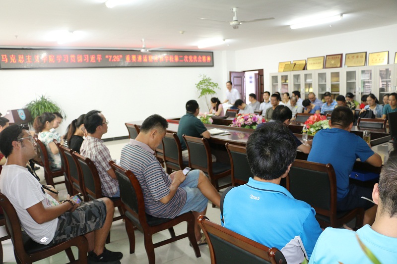 9月5日下午,马克思主义学院在学院会议室召开教职工大会,专题学习贯彻习近平总书记“7.26”重要讲话精神和海南大学第二次党代会精神。院党委书记段捷频出席并主持,学院全体教职工参加专题学习会。