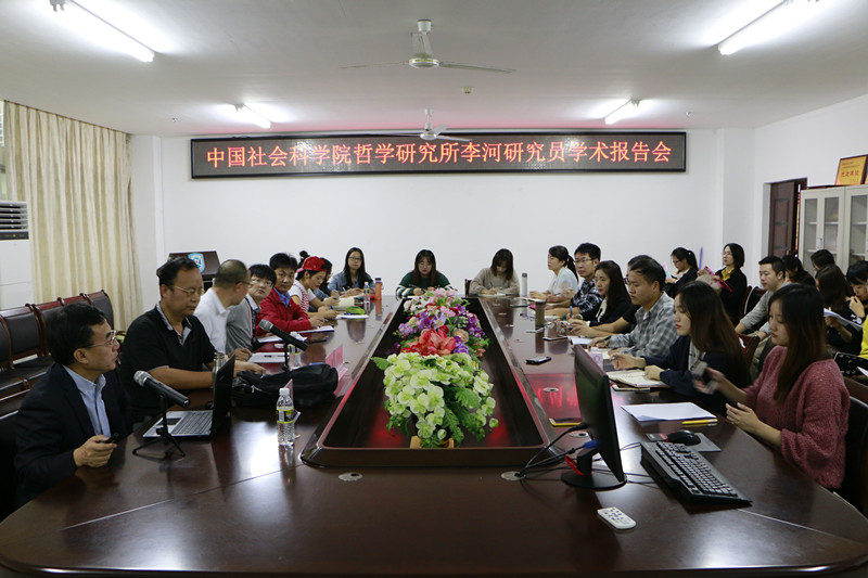 11月20日上午,马克思主义学院在社科楼311会议室召开了主题为“文明冲突与中国道路”的学术报告会。此次报告会邀请了中国社会科学院哲学所、现代外国哲学研究室李河研究员为主讲嘉宾,我院副院长王善担任主持,学院全体在校研究生和部分老师共同参与。
