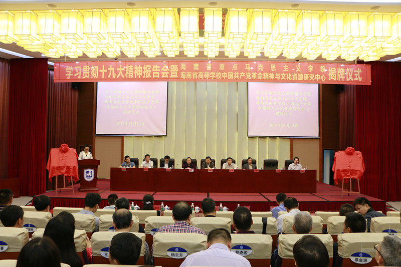 11月19日上午,海南大学海南省重点马克思主义学院、海南省高等学校中国共产党革命精神与文化资源研究中心揭牌仪式在我校社科楼二楼报告厅举行。教育部高等学校社会科学发展研究中心主任王炳林,省委宣传部副部长吴斌,省委教育工委专职副书记麦浪,海南大学校长李建保,校党委常务副书记廖清林,校党委副书记,纪委书记杜明娥,副校长胡新文,校党委常委韩淑梅、谭勇、陈明宝出席仪式。全校中层干部正职以及马克思主义学院师生参加揭牌仪式。杜明娥主持揭牌仪式。