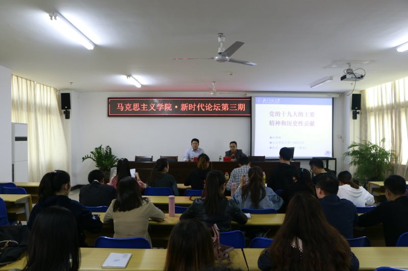 12月8日下午,马克思主义学院第三期新时代论坛在学院多媒体报告厅召开,诚挚邀请了北京师范大学马克思主义学院博士生导师赵朝峰教授为学院全体研究生作主题为“十九大的重要解读和历史性贡献”的学术报告,报告会由学院党委副书记张井富主持。赵朝峰教授在报告中主要从十九大的里程碑意义和十九大的主要精神两大方面的相关问题进行深刻解读。他在讲座中提到党的十三大、党的十四大、党的十九大是具有里程碑意义的几次重要大会,并结合习近平的7.26讲话对十九大的重大理论创新做了详细的阐述和说明。他对照了毛泽东、邓小平、习近平开创的时代的共有特征,表现为有明确宏伟的目标和实现目标的手段以及发挥了关键作用,解决了关键问题。与此同时,他建议马学科的研究生应该重点关注大会的决议,认真学习并学透。他还强调,我们应该学会运用具体的经济学数据、回顾世界社会主义500年历史,深刻体会其用意,培养看待问题的世界观和方法论的思维,加强历史和哲学这两大学科的学习能力,更好地理解判断新时代的重要依据和标准。