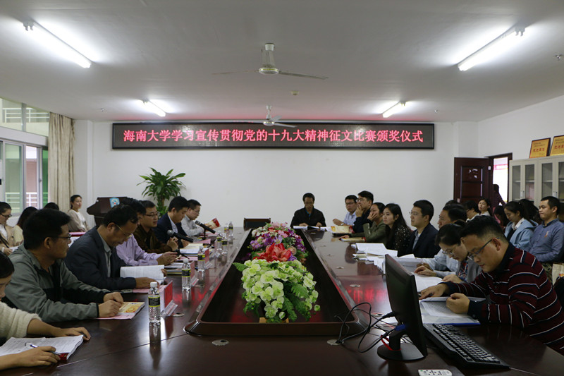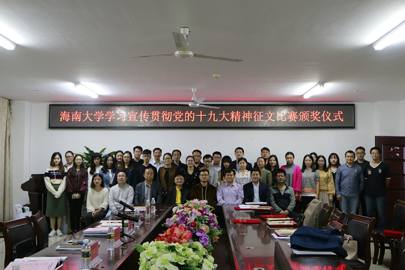12月13日,海南大学学习宣传贯彻党的十九大精神征文比赛颁奖典礼暨座谈会在马克思主义学院社科楼会议室顺利举行。海南大学校党委常委、宣传部部长谭勇,海南大学特邀党建组织员陈传汉,马克思主义学院院长李辽宁、党委副书记张井富、副院长王善、研究生辅导员张君成、科研办主任丛德生出席此次颁奖活动,征文比赛获奖师生,马克思主义学院研究生、本科生代表参加活动,活动由张井富主持。