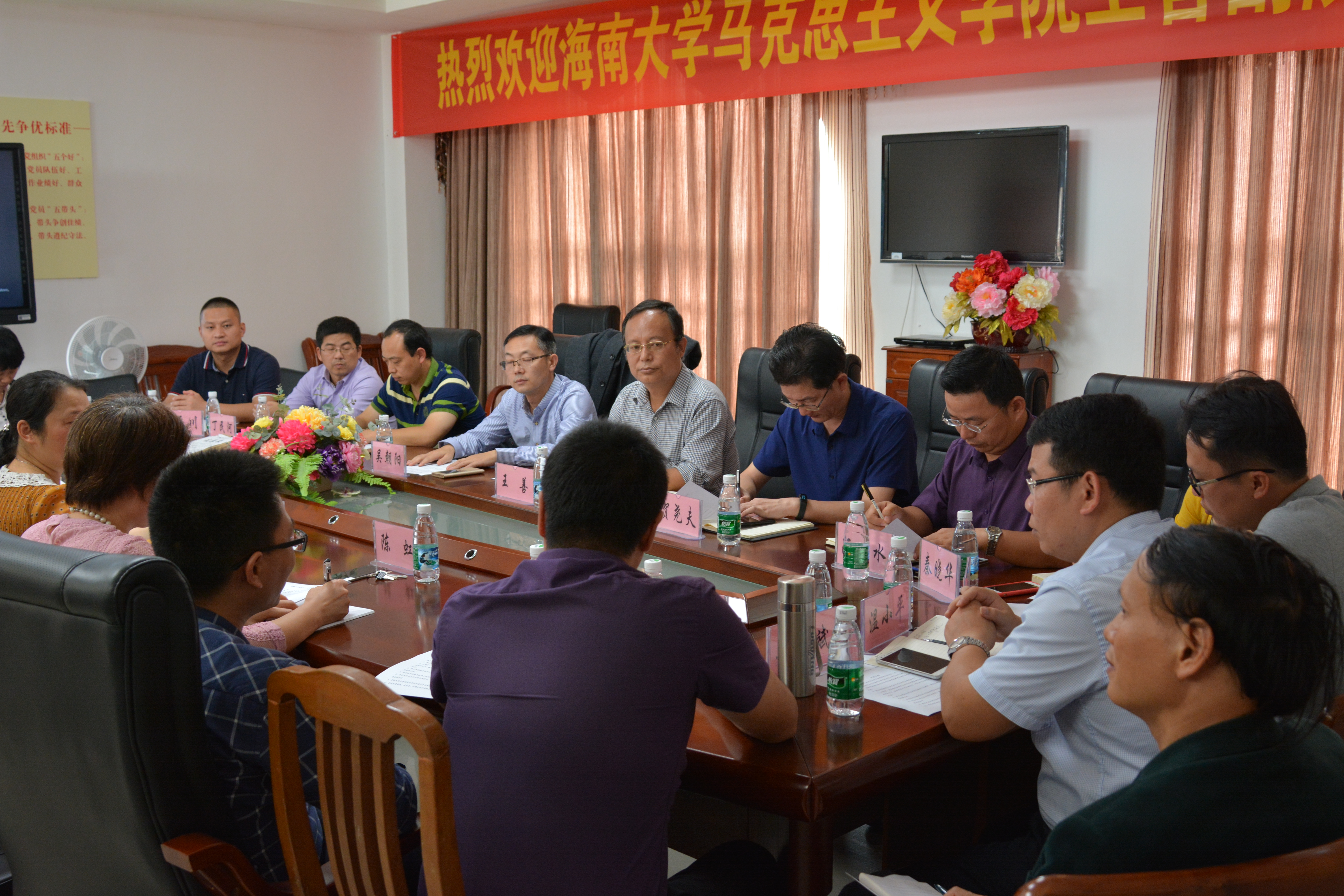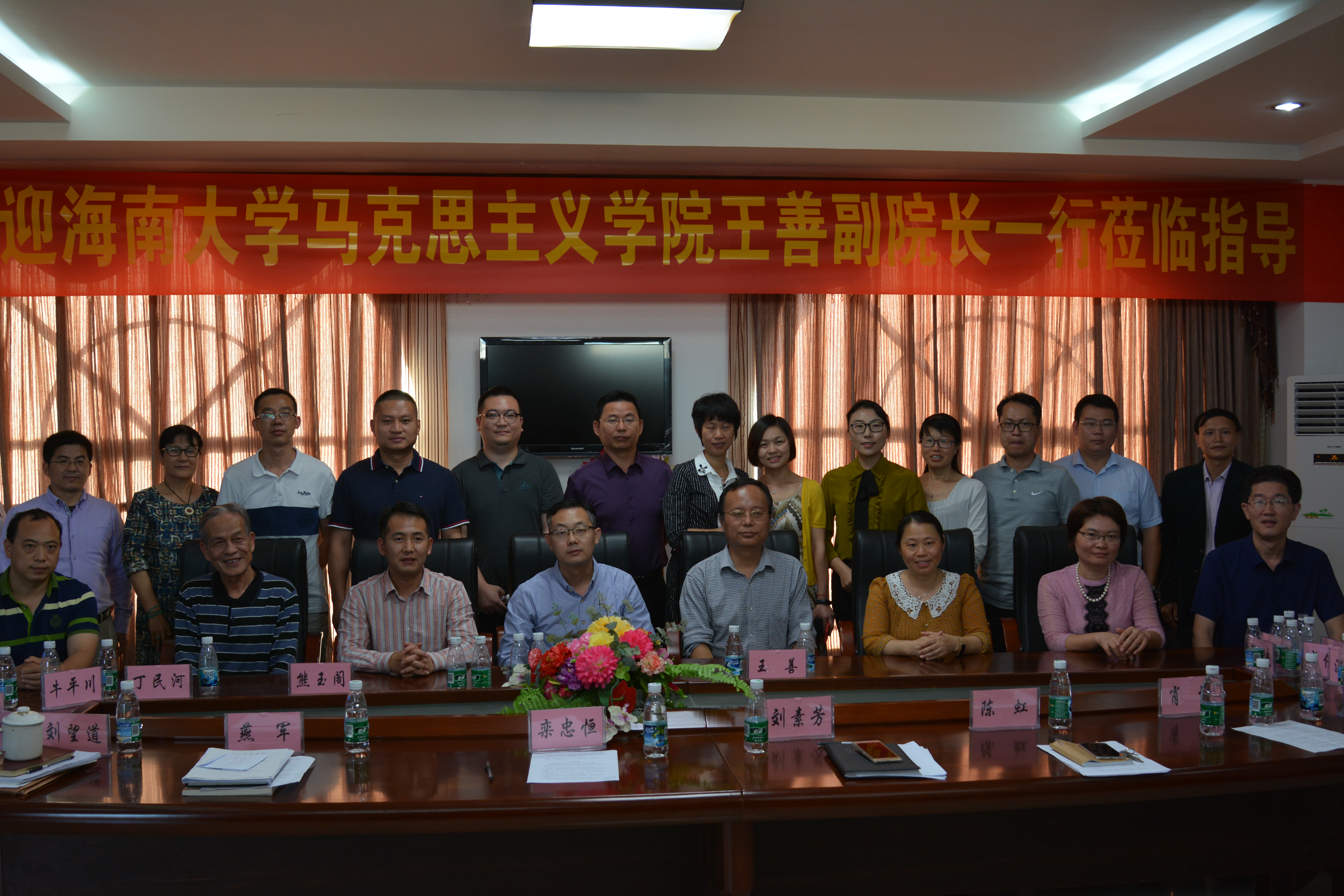 近期,马克思主义学院副院长王善、教学委员会副主任贺尧夫带领思想政治理论课五个教研部负责人和部分骨干教师等一行14人赴海口经济学院马克思主义院进行教学交流研讨活动。海南大学教务处副处长吴朝阳、教务系统负责人熊玉阁、教务科科长丁民河也一同参加了此次活动。