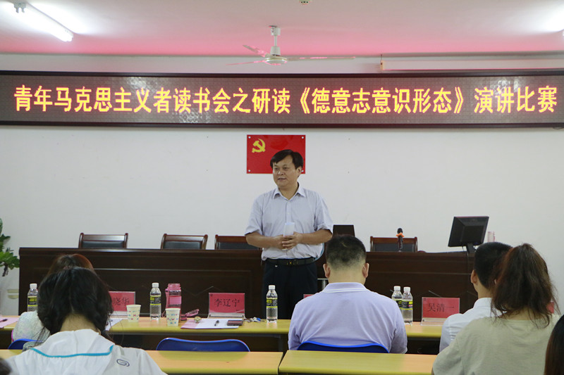 6月29日晚,马克思主义学院在社科楼315举行了研读《德意志意识形态》演讲比赛。马克思主义学院院长李辽宁、党委副书记张井富出席并担任演讲比赛的评委。