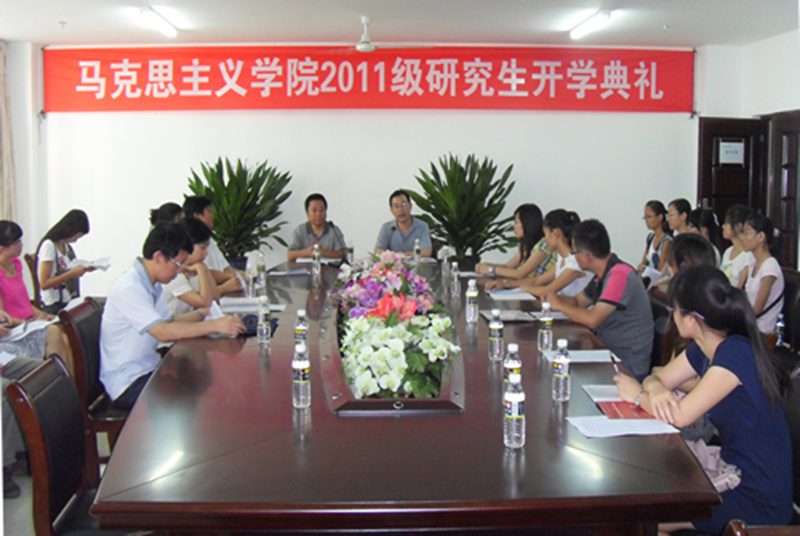 李英华教授代表研究生导师发言。他引用《礼记•大学》:“苟日新,日日新,又日新”一语作为讲话的核心,希望同学们能够用全新的精神状态,努力的学习专业知识,不断的提高自己,充实自己。2010级思想政治教育专业涂意同学代表老生发言,希望新生在未来的三年学习中认真研究专业知识,拓宽研究思路,多与导师沟通交流,在学习中不断的完善自己。2011级马克思主义基本原理专业鄢平牡同学代表新生对领导、老师和师兄师姐的欢迎表示感谢,并表示在今后的学习生活中会积极主动与老师沟通,勤于科研,勇于实践,不断提升专业素养和综合素质。在师生自由交流的过程中,与会的每一位老师都对新同学提出了要求,并给予厚望。