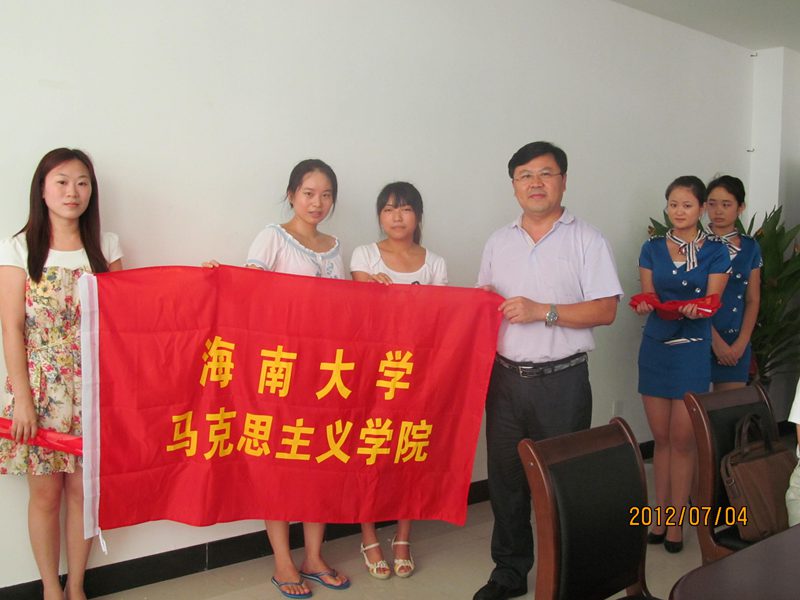 仪式最后,梁谋书记向社会实践团队授院旗,宣布马克思主义学院2012年度大学生志愿者暑期“三下乡”社会实践活动正式启动,并预祝此次活动圆满成功。