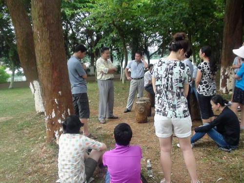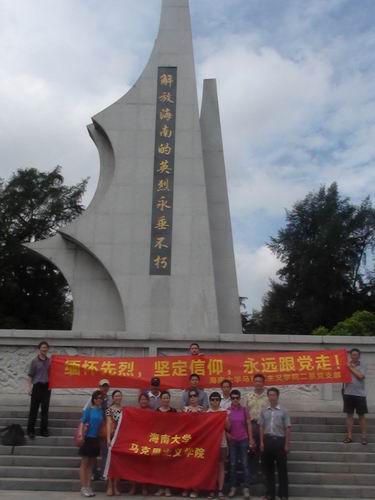 为了庆祝建党九十二周年,进一步增强党支部的凝聚力和战斗力,7月1日上午,我院政治理论二系全体成员和政治理论一系部分特邀嘉宾一行18人前往海口市金牛岭公园参观了解放海南岛战役烈士陵园。在参观期间,党支部书记费秋香老师和系主任贺尧夫老师代表全体成员向烈士纪念碑献花。随后,全体成员在烈士纪念碑前就继承先烈遗志,做好本职工作进行了宣誓。最后,张朔人老师为大家讲解了解放海南岛战役的相关情况。
