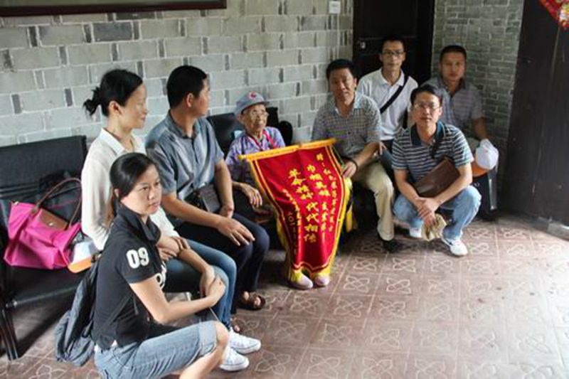 张云阁副院长代表马克思主义学院向103岁高龄的红色娘子军老战士王运梅赠送了锦旗