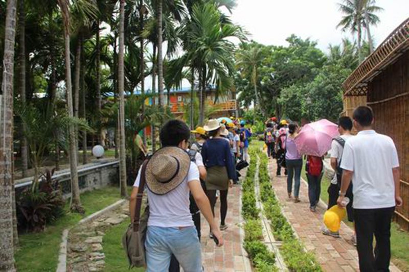 下午一点,实践教学队伍来到了社会主义新农村的典范——琼海市博鳌镇朝烈村。在村委会大院里,在牛平川老师的主持下,季笃武老师为同学们做了一场30分钟的现场教学,季老师从海南生态文明村开始讲起,介绍了海南生态文明村的发展历程、现状,以及朝烈村的基本情况。张云阁副院长对即将开始的参观考察提出了具体的要求。随后,同学们进入朝烈村内游览。修葺一新的村屋民舍、绿树掩映下的乡村酒吧、别有风情的青年旅社……展现出一副欣欣向荣的社会主义新农村建设的优美画卷,引得同学们流连忘返,赞叹不已。