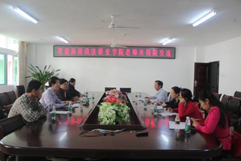 11月29海南政法职业学院社科部陈焕随副主任等一行多人,就当前思想政治理论课教学方法改革与我院教师进行交流。院党委书记梁谋主持座谈交流会。