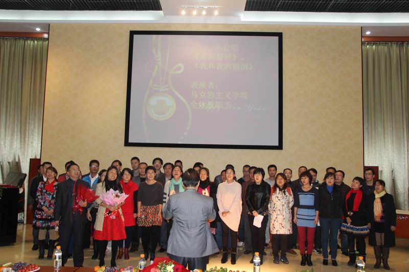 2015年的钟声即将敲响,时光的车轮又留下了一道深深的印痕。在元旦佳节到来之际,我院于2014年12月28日晚在思源学堂多功能厅举办2015年迎新师生联欢会。院长李德芳、院党委书记段捷频、副院长张云阁和杨娜与全院师生一同参加了联欢会。 李德芳院长作新年致辞,代表院领导向全院师生致以诚挚的问候和衷心的祝福。他指出,在2014年,学院一直秉承“立德、博学、求是、创新”的院训精神,抓住机遇,推进内涵发展,在人才培养、科学研究、社会服务等各项工作取得丰硕成果,这一切都离不开学校领导和相关职能部门的关心和支持,更是全院广大师生共同努力的结果。他希望,在新的一年里马院全体师生同心协力,再接再厉,再创佳绩。 此次晚会形式各异的节目,精彩纷呈的表演,为在场观众献上了一场精彩绝伦的视听盛宴。开场舞《I got a boy》拉开了晚会的序幕,迅速点燃了全场欢乐温馨的气氛;第一个节目由段捷频书记和杨娜副院长领唱、全体教职工的大合唱——《走向复兴》、《我和我的祖国》让大家耳目一新,铿锵的节奏、高亢的腔调、蓬勃的气势博得大家连连的称赞;本科生独具民族风情的《巴郎仔》以舞者华美的服饰、修长的身段、高雅的气质,令在场观众如痴如醉;学工办兼职辅导员一首《奔跑》以激情、活力的基调彰显着马院年轻一代的自由与青春;李俊教授的即兴表演模仿伟人邓小平92南方谈话,更是把思想性和艺术性完美结合;晏峻老师和李辽宁老师的《古韵流馨》独具匠心,将高山流水的古典音乐、刚柔并济的太极拳以及雄健洒脱的书法完美融合,博得场内阵阵喝彩;研究生气势恢宏的诗歌朗诵《中国正能量》以及深情温暖的《你最珍贵》也为晚会增添了不少色彩;最激动人心的莫属师生互动的游戏环节和抽奖环节,默契十足的配合、诙谐幽默的语言、群情激昂的竞猜,将晚会的气氛烘托到高潮。 最后,学院团委学生会所有成员带来歌曲《相亲相爱一家人》,激昂的歌声唱响全场,晚会也在一片欢乐祥和的氛围中落下了帷幕。 此次晚会在老师和同学们的共同努力下取得圆满成功,这不只是一场视觉上的饕餮盛宴,更是一段师生同心追梦的旅程。在这条路上,青春不朽,梦想无价,师生携手,马院一家!在此提前预祝马克思主义学院全体师生元旦快乐!马克思主义学院的明天也必将更加辉煌!