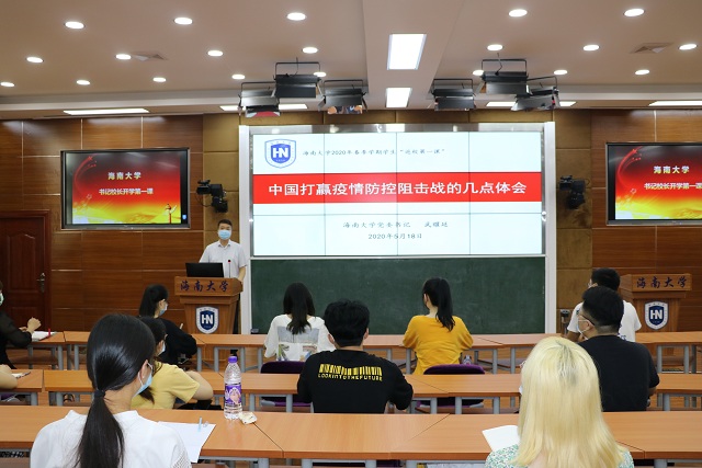 5月18日上午,海南大学2020年春季学期“开学第一课”在3号教学楼211教室举行,校党委书记武耀廷为海南大学马克思主义学院2017级本科生以及部分研究生讲授“开学第一课”。