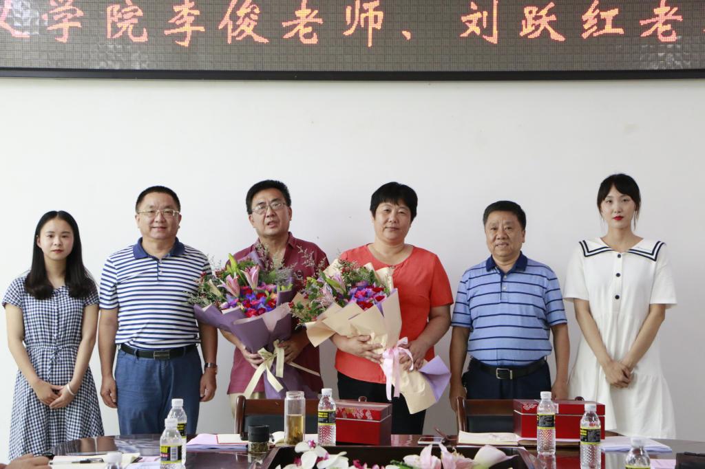 2020年7月20日下午,马克思主义学院在社科楼隆重举行李俊教授、刘跃红老师荣休欢送会,院长张云阁,党委书记段捷频,副院长杨娜、王善、秦晓华出席,全体教职工和学生代表参加活动。院党委副书记、工会主席张井富主持荣休欢送会。
