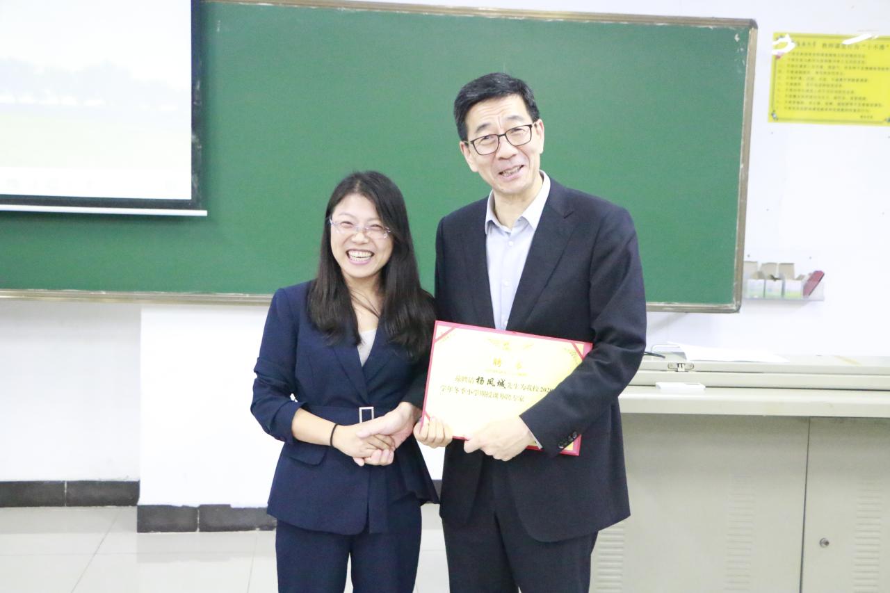2020年12月11日晚,马克思主义学院2020-2021学年冬季小学期系列讲堂第二讲在五号教学楼114教室举行。中国人民大学杨凤城教授应邀为我院学生作以“中国共产党的文化观与文化发展战略”为主题的学术报告,副院长杨娜出席并为杨凤城教授颁发了海南大学“冬季小学期授课外聘专家”证书。