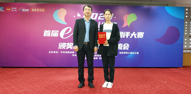12月29日,2020海南首届“e海瑞评”网评大赛颁奖仪式在海南日报社举行。海南大学荣获“优秀组织奖”,马克思主义学院2019级思想政治教育专业学生许缘圆荣获一等奖。