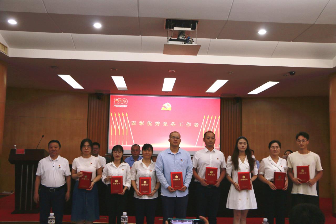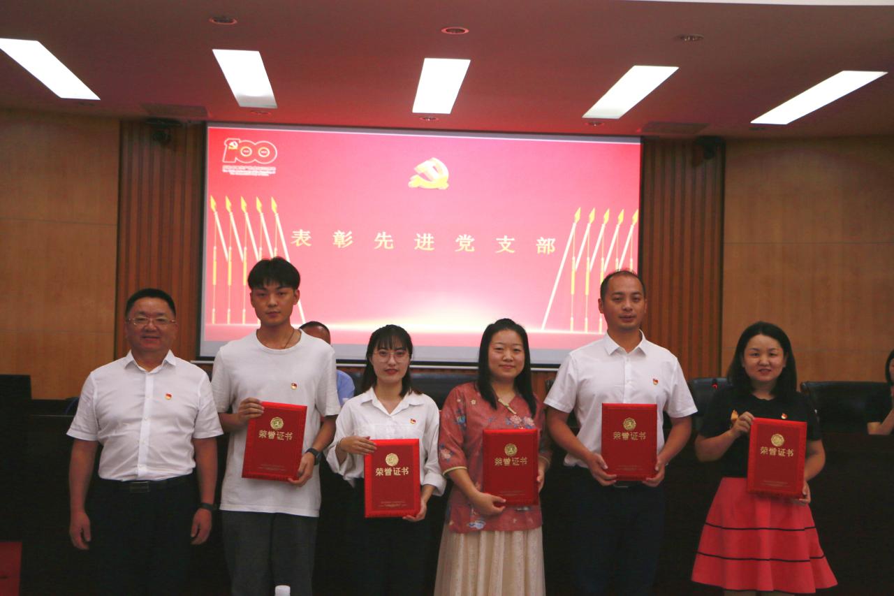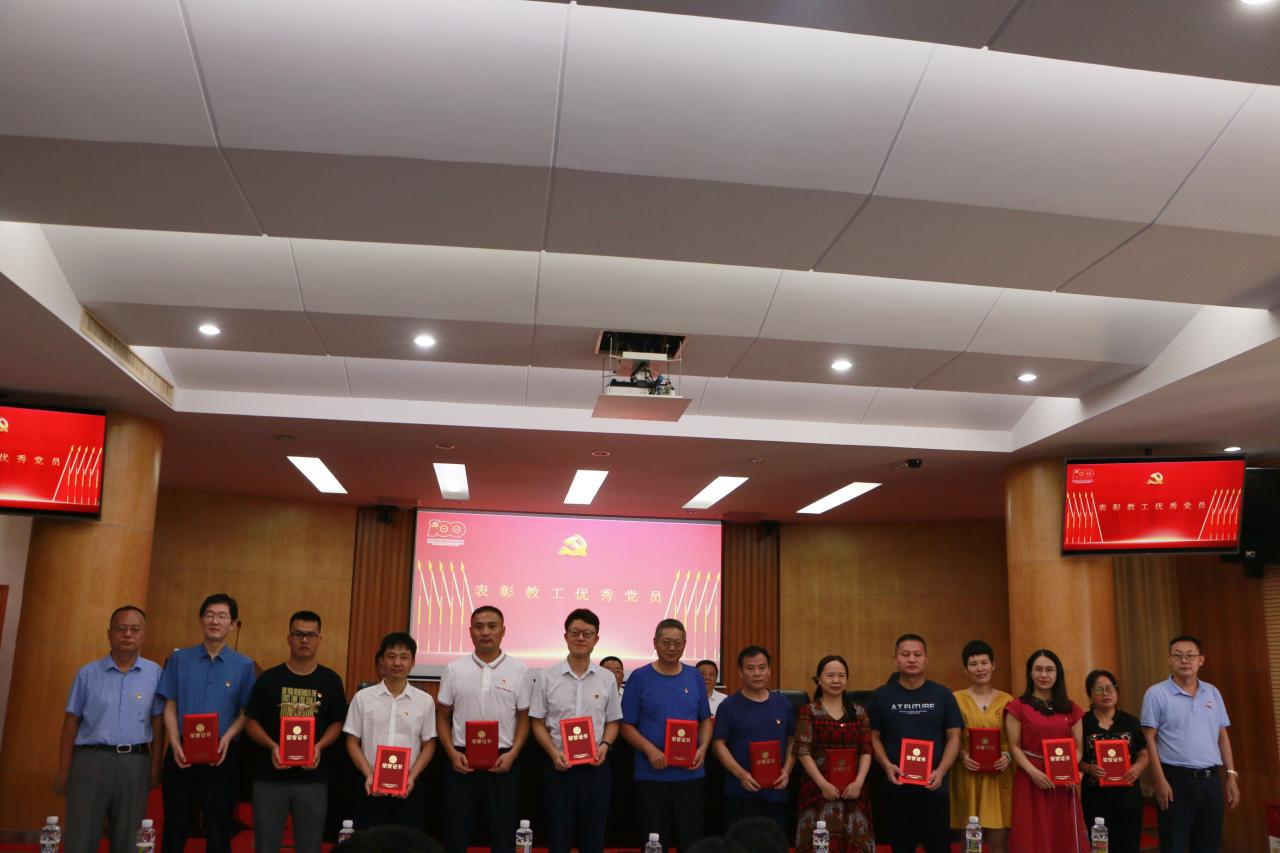 大会在雄壮的国歌声中拉开帷幕。面对庄严的党旗,全体起立,由王善领誓,重温入党誓词,进一步强化了党员意识,坚定理想信念,牢记初心使命。吴朝阳通报了获得校级和省教育厅党委荣誉称号的先进集体和优秀个人,宣读学院党委“七一”表彰文件,大会隆重表彰了获得学院先进党支部、优秀党务工作者、优秀党员的集体和个人。