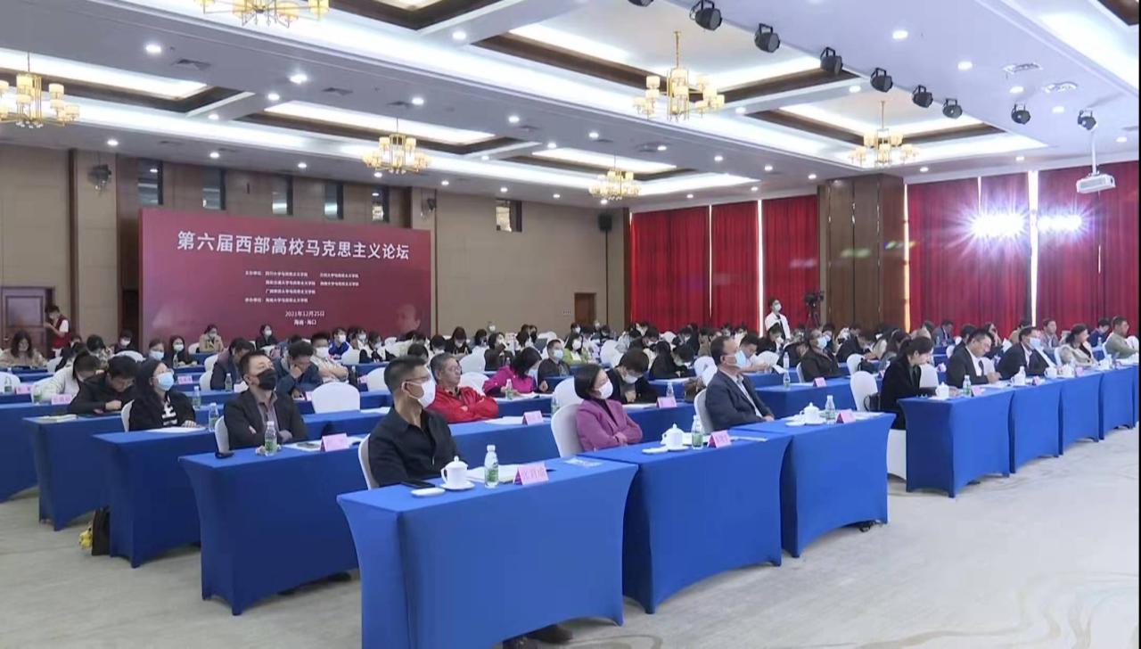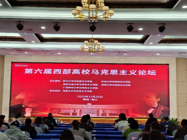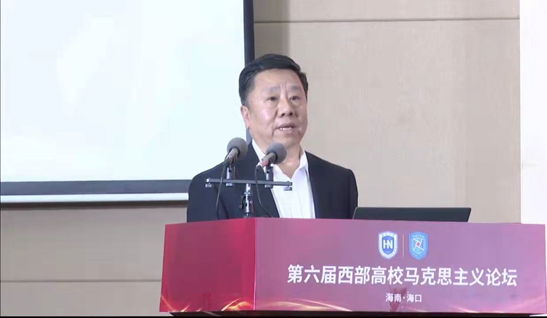12月25日,第六届西部高校马克思主义论坛在海口举行。本次研讨会由四川大学、兰州大学、西安交通大学、西南大学、广西师范大学五所高校马克思主义学院主办,william威廉英国官网承办。来自中共中央党校、山东大学、四川大学、兰州大学、西安交通大学、南京航空航天大学、西南大学、广西师范大学等高校及科研机构的三百余名学者以线上方式参会,来自海南各高校马克思主义学院的百余名师生以线下方式参会。同时,参与直播观看的观众超过4万人次。海南大学党委书记符宣国出席论坛并致辞,论坛开幕式由william威廉英国官网院长张云阁教授主持。