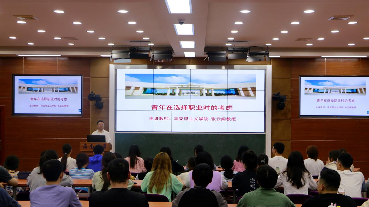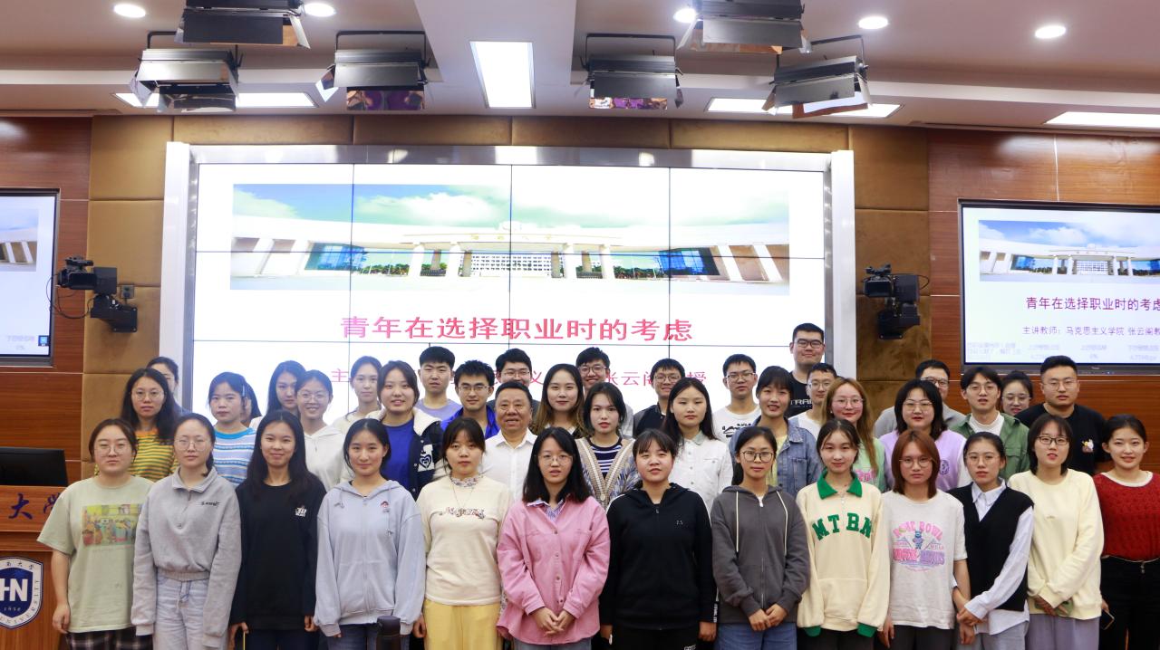 本次见面课的主题是《青年在选择职业时的考虑》。主讲教师马克思主义学院院长、全国教书育人楷模、国家教学名师张云阁教授,以“理想和职业”为关键词,用生动、幽默的语言,援引马克思著作中的精彩部分,引导同学们思考“人为什么要有理想”、“理想与职业的关系”以及“青年马克思职业选择给我们的启示”问题。整堂课张老师以青年马克思选择职业时的考虑所具有的时代意义为主线,鼓励大家结合以人类幸福和自身的完美为职业选择的指针,选择最能为人类而工作的职业,心系国家,做一名坚定的马克思主义者。