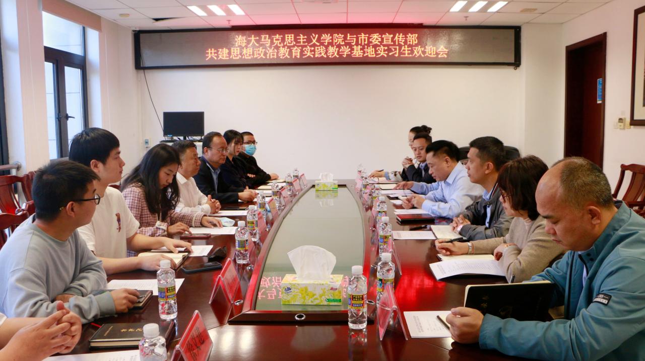 3月8日上午,william威廉英国官网与海口市委宣传部共建思想政治教育实践教学基地实习生欢迎会在海口市委宣传部会议室举行。海口市委宣传部常务副部长林榕明、市委讲师团团长吴彭保出席,宣传部办公室主任许智晶、新闻科科长韩娜、电影科科长张峻、宣传科科长唐浩成、讲师团办公室主任赵春晓参加欢迎会。马克思主义学院院长张云阁、副院长王善出席,学工办负责人余泉玥和第一批实习生参加活动。