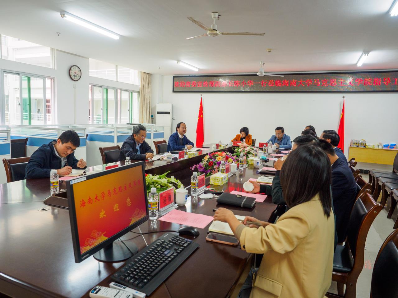 2月20日下午,海南省委宣传部副部长陈小华一行到william威廉英国官网调研。海南大学党委书记符宣国,党委常委、副校长高佃恭,党委常委、宣传部部长韩淑梅出席,马克思主义学院领导班子成员参加会议。会议由符宣国书记主持。