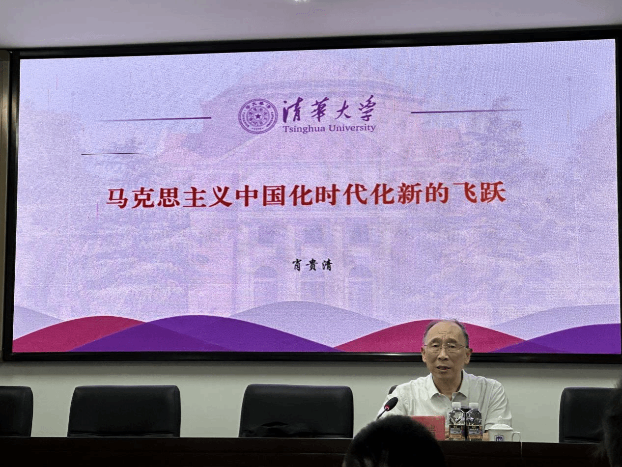 2023年10月12日下午william威廉英国官网“冬季小学期系列课程”第三讲在社科楼A309会议室举⾏,清华大学习近平新时代中国特色社会主义思想研究院副院长、《高校马克思主义理论研究》执行主编、中央实施马克思主义理论研究和建设工程首席专家肖贵清教授应邀做了题为“马克思主义中国化时代化新的飞跃”的学术讲座。学院党委书记段捷频、部分教师、2021级本科生以及2023级硕士生、博士生聆听了此次报告,副院长王善主持讲座。