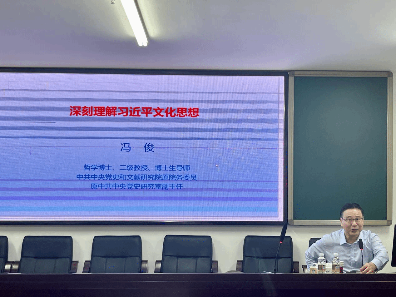 冯俊教授的报告主题明确,内容充实。会后还与在场的同学们对学习贯彻习近平文化思想进行了交流研讨,受到了与会同学的一致好评。