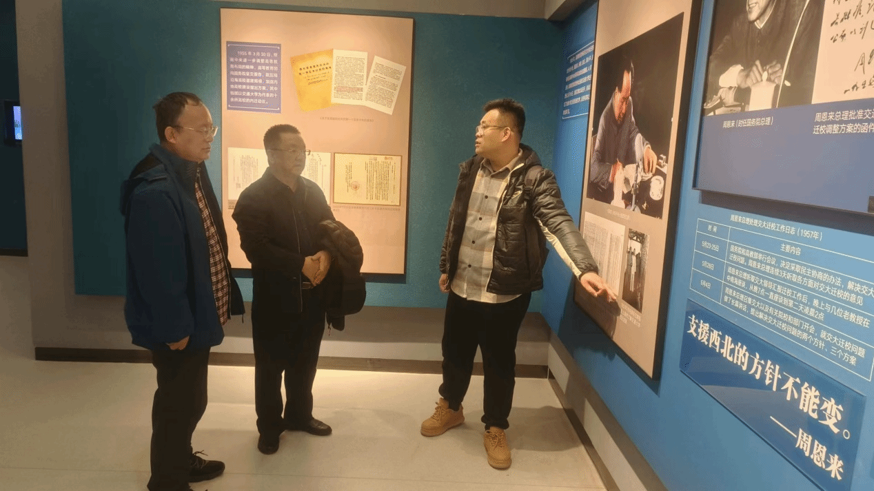 调研组与西安交通大学马克思主义学院同行举行座谈,西安交通大学马克思主义学院党委书记苏玉波主持座谈会并就党建工作进行介绍,院长燕连福从历史沿革、william英国中文官网、服务地方等方面介绍了西安交通大学马克思主义学院的办学情况,并重点介绍了“西迁精神”融入思想政治理论课的相关经验,副院长陈建兵、梁军,我院校友、西安交通大学马克思主义学院高飞老师出席座谈会并带领调研组参观了交大西迁博物馆。