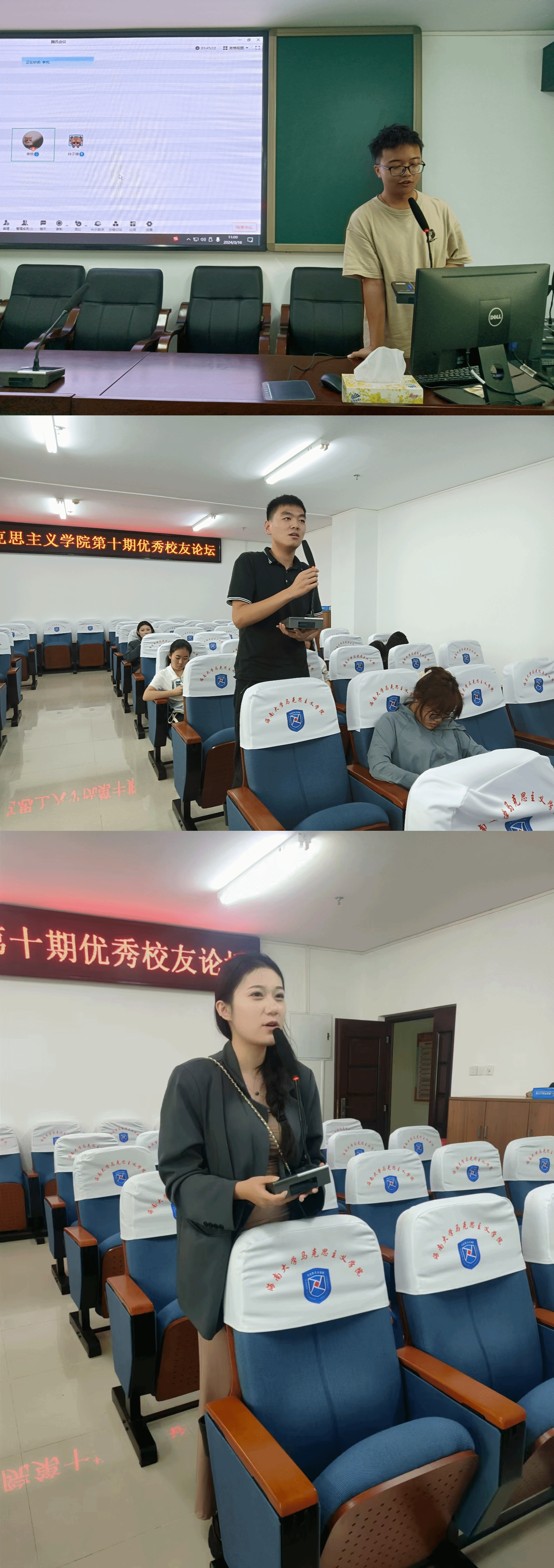 龚鑫学姐以“如何度过大学生活”为主题,从我想做什么、需要我做什、我要怎么做三个部分进行分享,并结合自身学习经历和升学经验同马院学生们进行交流,鼓励大家努力学习、积极探索。